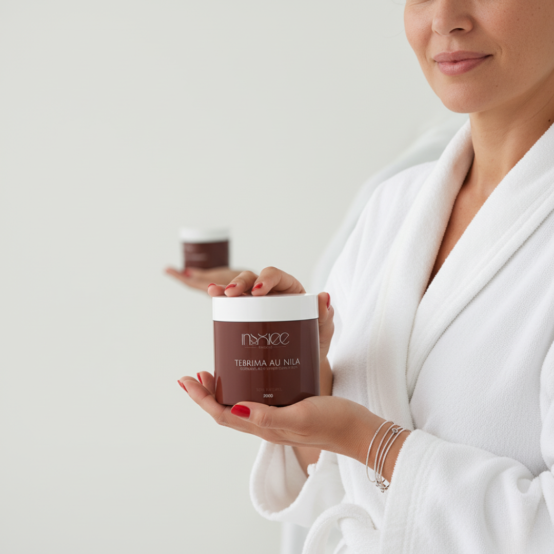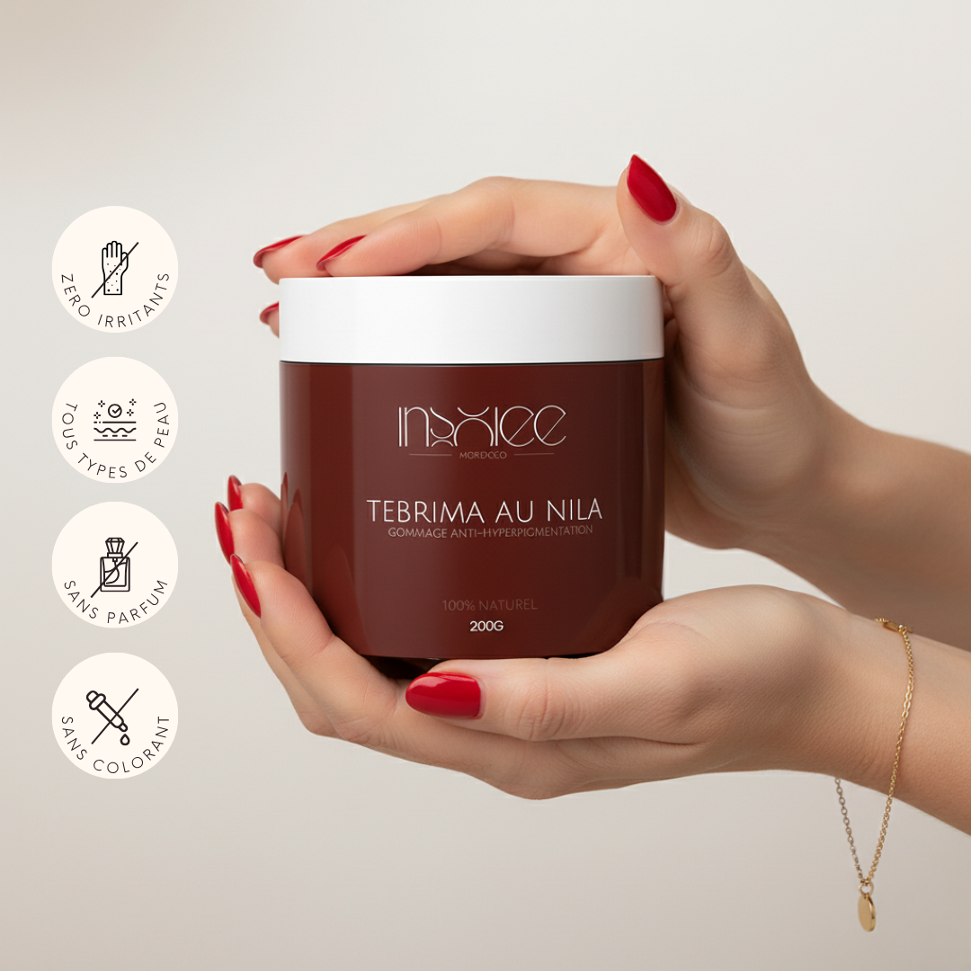 Ton teint mérite d’être révélé, pas caché. Le gommage Tebrima au Nila agit en douceur pour lisser, purifier et illuminer la peau sans l’agresser.